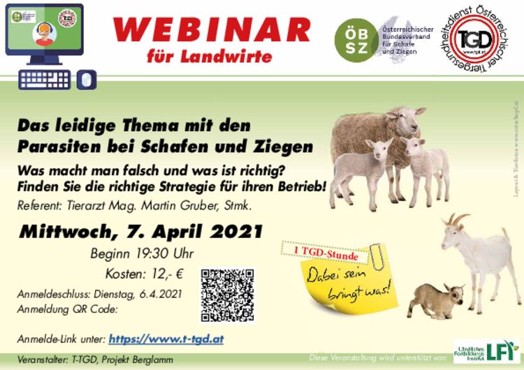 Am 7. April 2021 organisiert der Tiroler Tiergesundheitsdienst in Zusammenarbeit mit dem Projekt Berglamm ein Webinar zum Thema Parasiten mit Tierarzt…