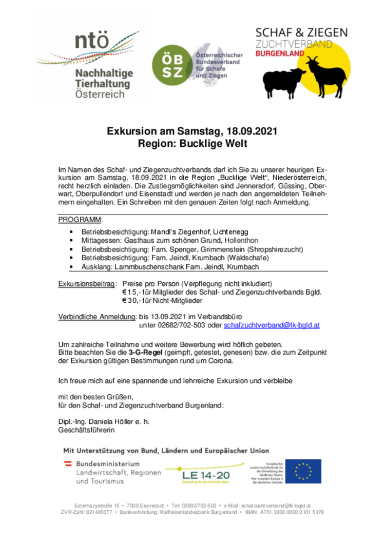 Der Schaf- und Ziegenzuchtverband Burgenland lädt recht herzlich zur heurigen Exukursion am Samstag, 18.09.2021 in die Region „Bucklige Welt“,…