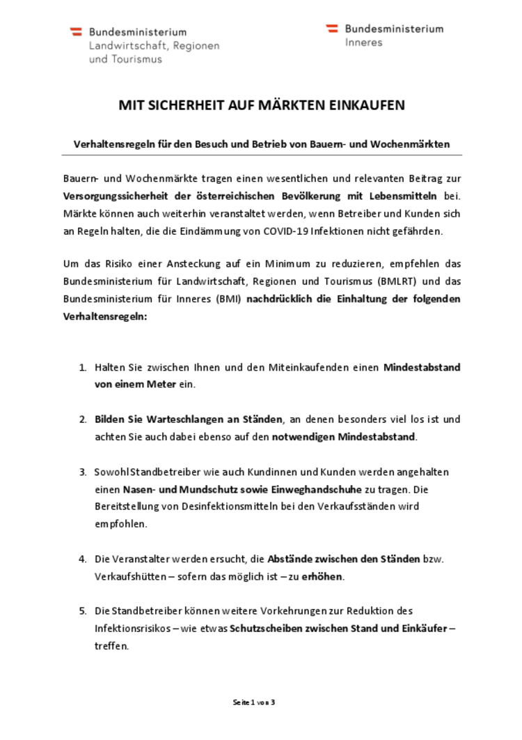 Aktuelle Informationen zum Coronavirus: BMSGPK und BMLRT informieren laufend!